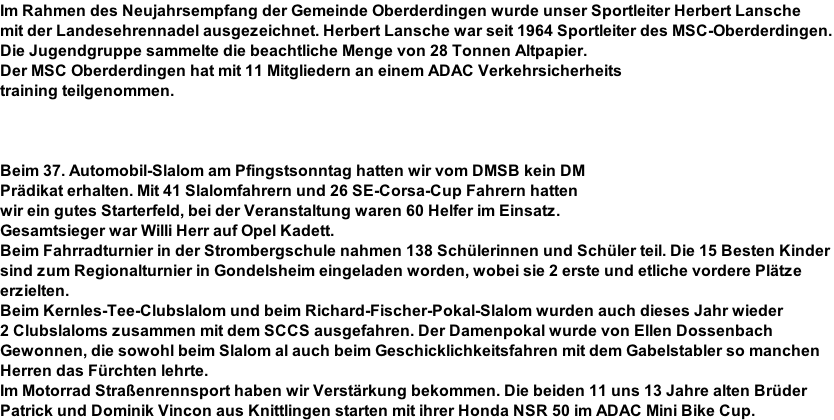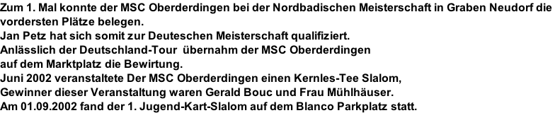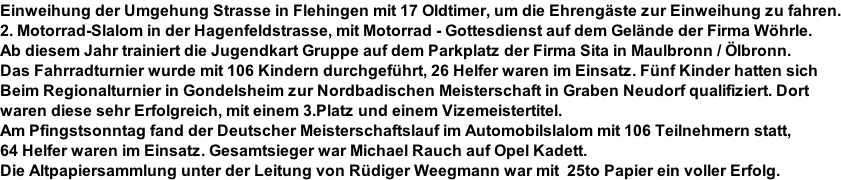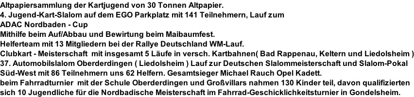 Ein Jugend – Kart wird angeschaft. Zuvor wurde mit dem AC Bretten gemeinsame Trainings auf deren Karts durchgeführt. Die Jugend - Kartgruppe war unter der Leitung von Rüdiger Weegmann und mit Unterstützung