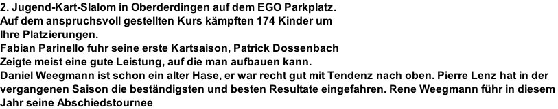 Klasse 1 erreichte Pierre Lenz den 26.Platz und Rene Weegmann den 21.Platz.