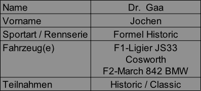 Formel 2 March 842 - BMW Formel 1 Ligier JS 33 Cosworth Formel 1 Lola-Larrousse LC88 Ford-Cosworth Startseite Jochen Gaa Startseite Vorstand-Kontakte